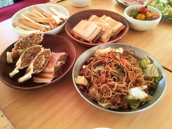 朝食はホットサンド。寺田くんの手つきが、建築模型を作っている時とまったく一緒(笑)。