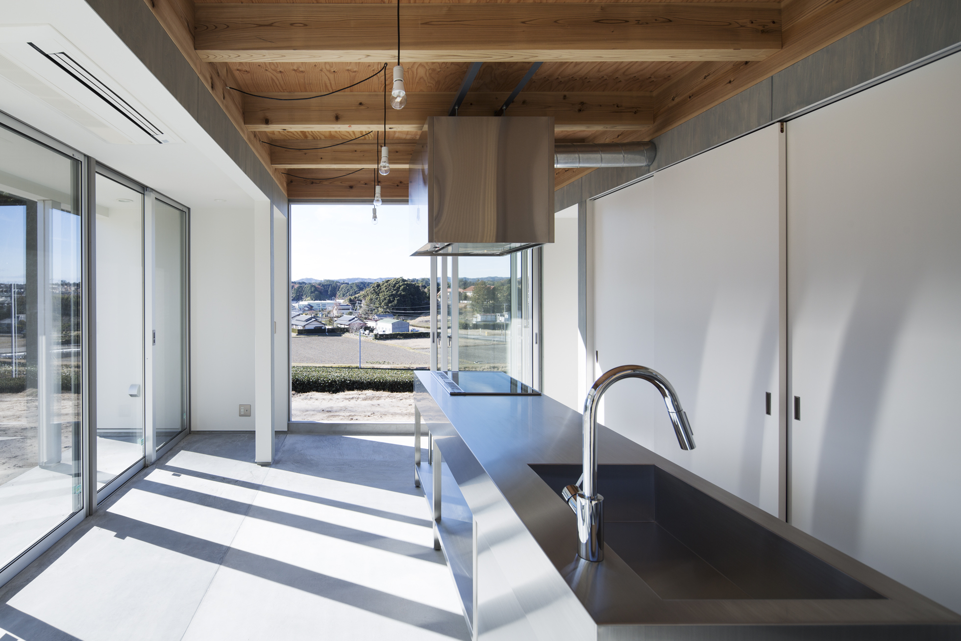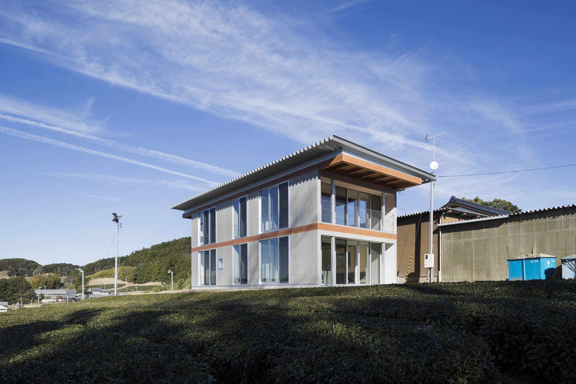 オカノウエノナヤ 所在地静岡県菊川市 発注者個人 業務内容基本設計・実施設計・工事監理 用途住宅 竣工年月2014.12 構造形式木造 規模地上2階建て 延床面積139.12㎡ 撮影1-17:長谷川健太 / 18-23:新建築社 写真部 担当金原大祐