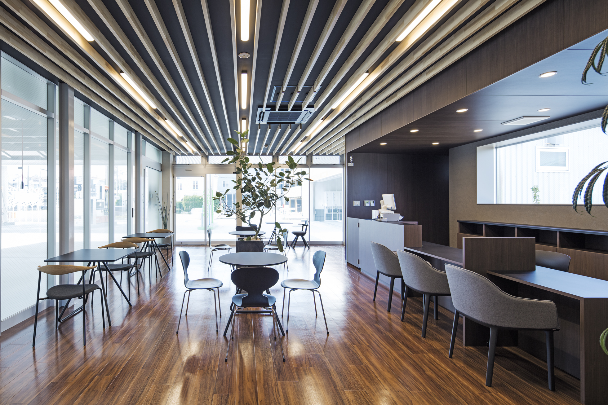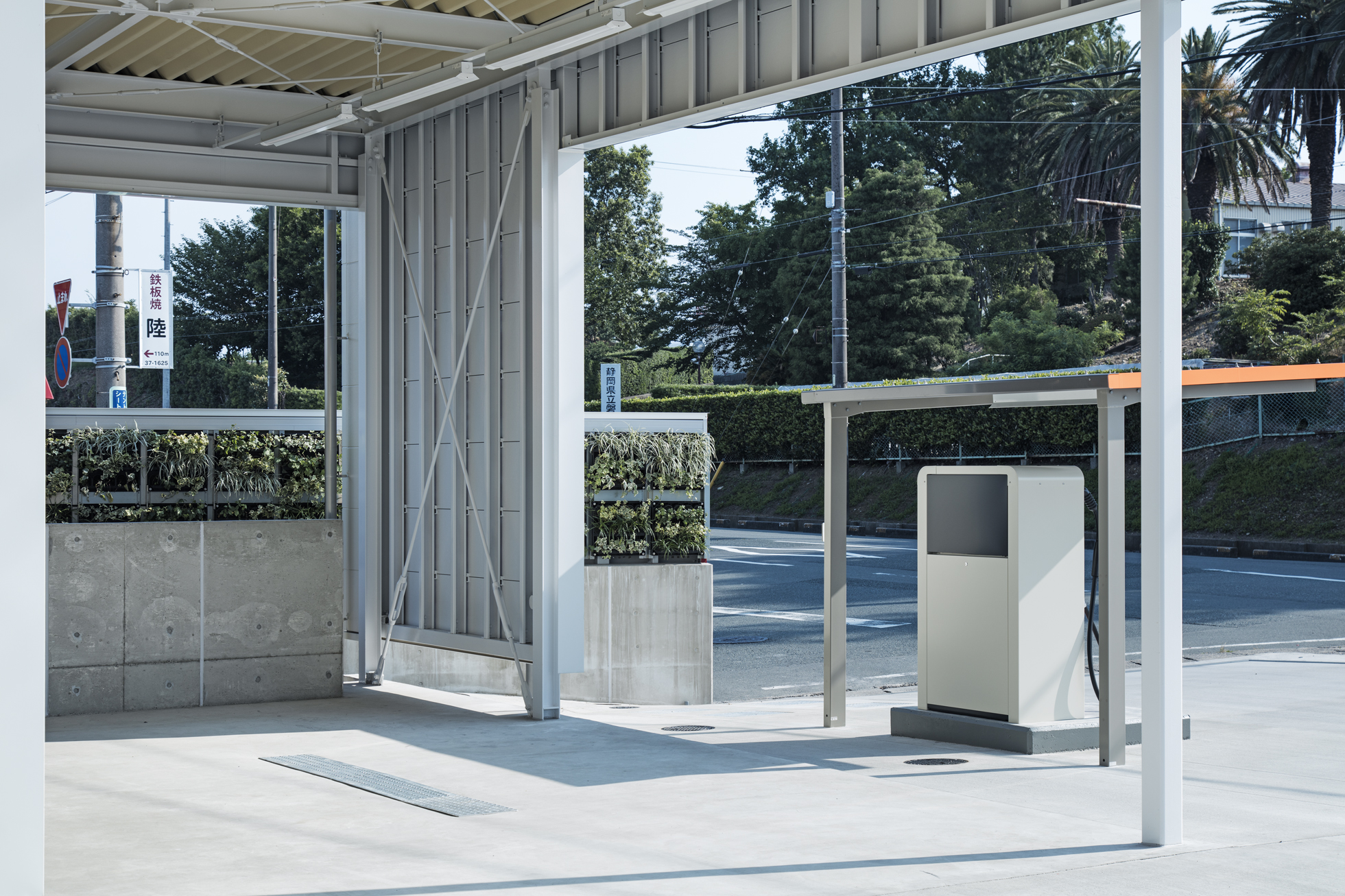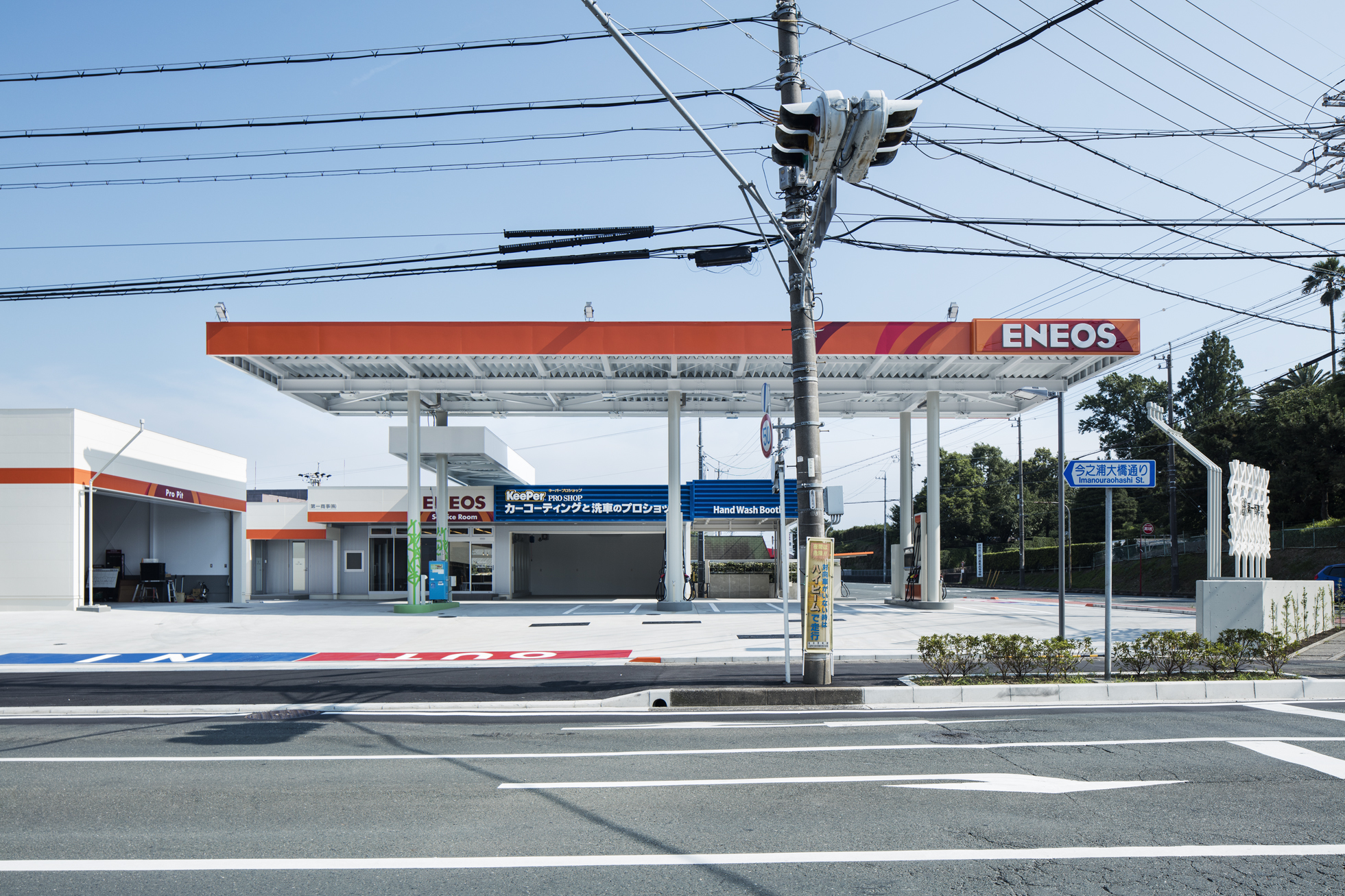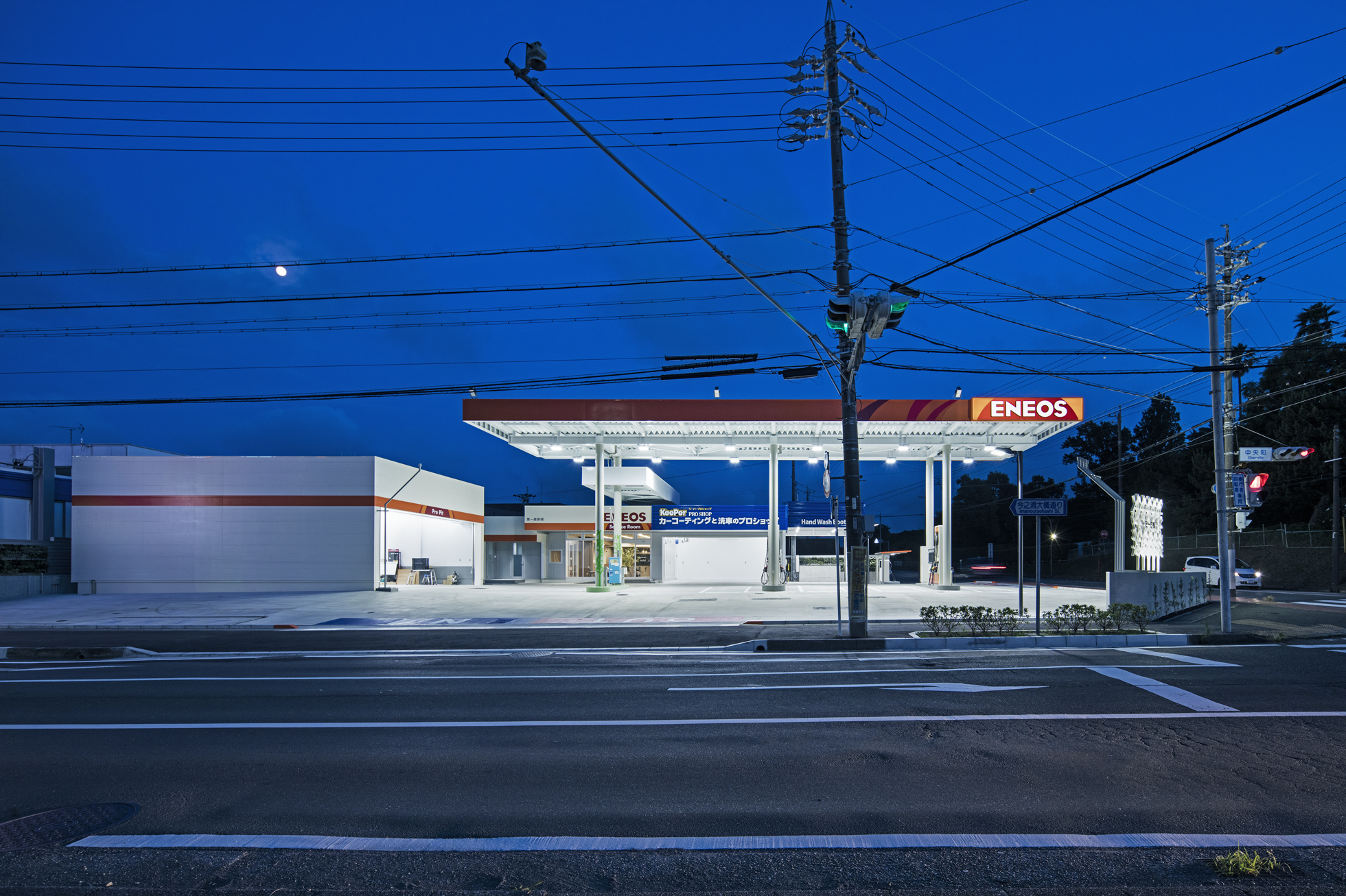 ENEOS 中央町SS 改修 所在地静岡県磐田市 発注者第一商事株式会社 業務内容基本設計・実施設計・工事監理 用途給油取扱所 竣工年月2017.06 構造形式鉄骨造 規模平屋建て 延床面積568.79㎡ 撮影長谷川健太 担当増田航平