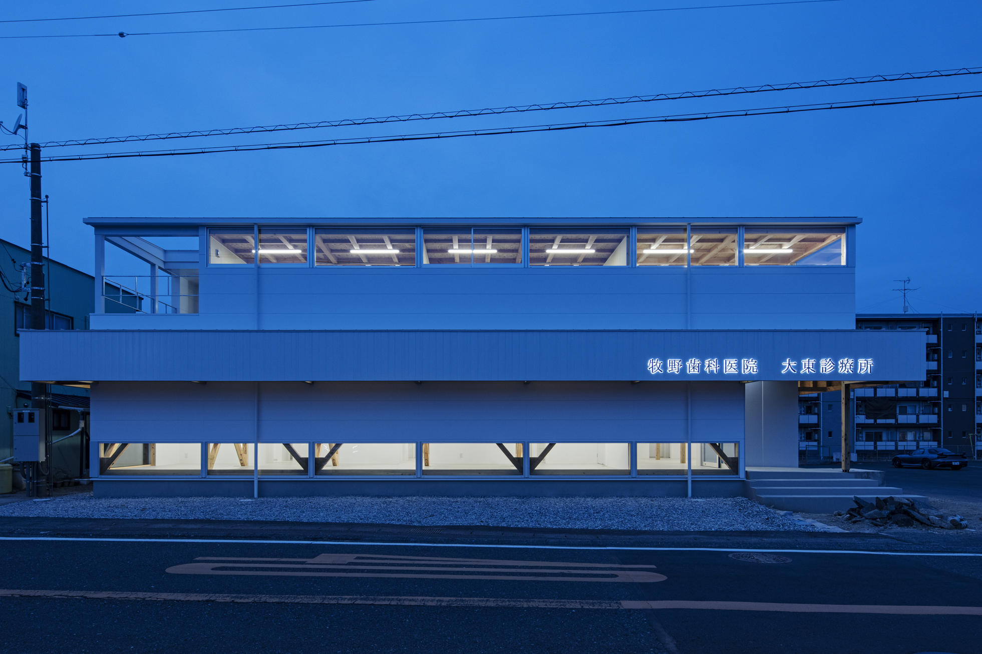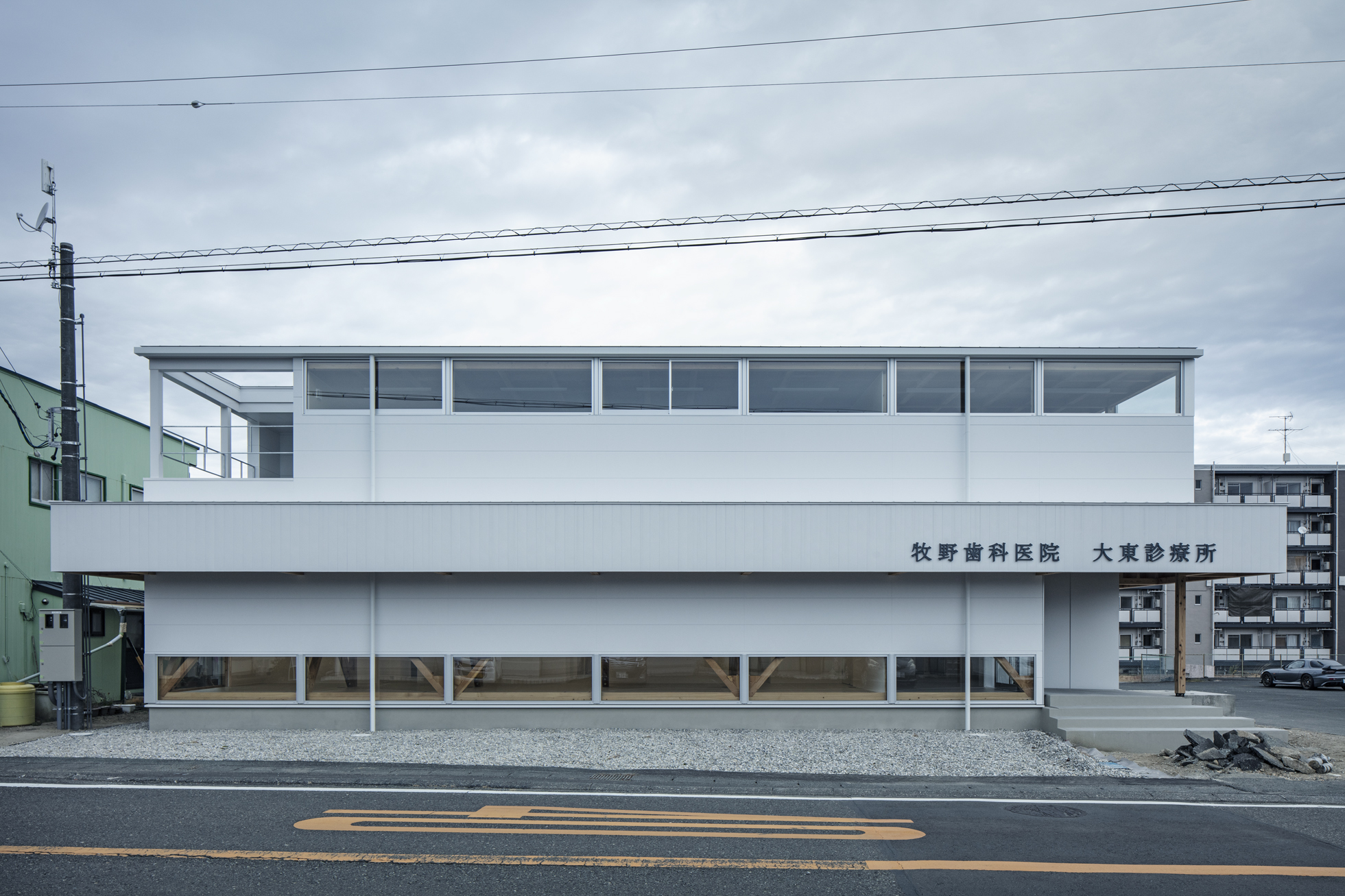 牧野歯科医院 大東診療所 所在地静岡県掛川市 発注者医療法人社団瑞歯 業務内容基本設計・実施設計・工事監理 用途診療所 竣工年月2020.12 構造形式木造 規模地上2階建て 延床面積299.17㎡ 撮影長谷川健太 担当寺田尚人
