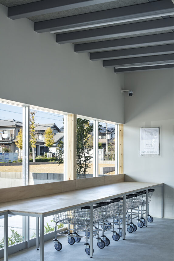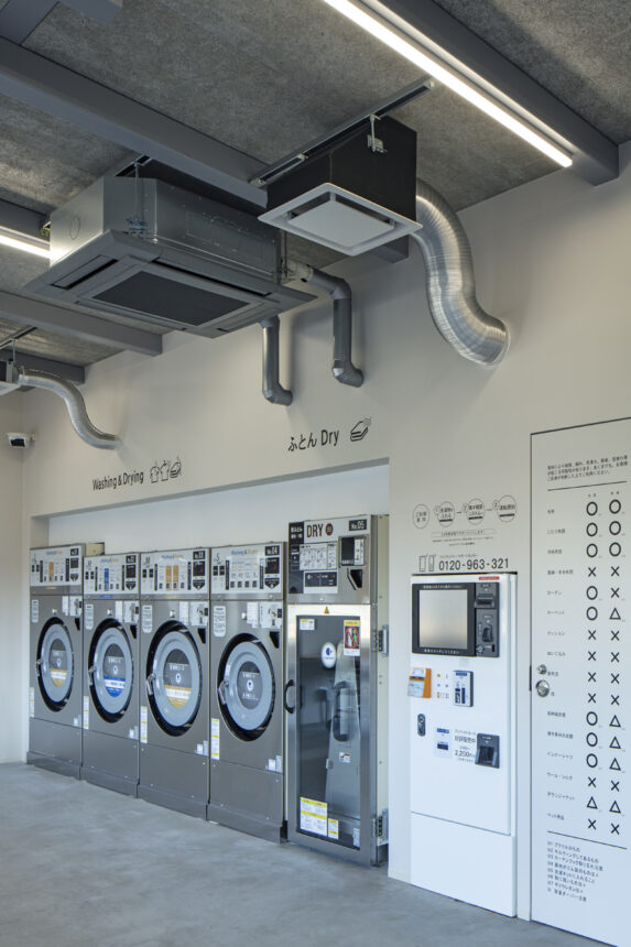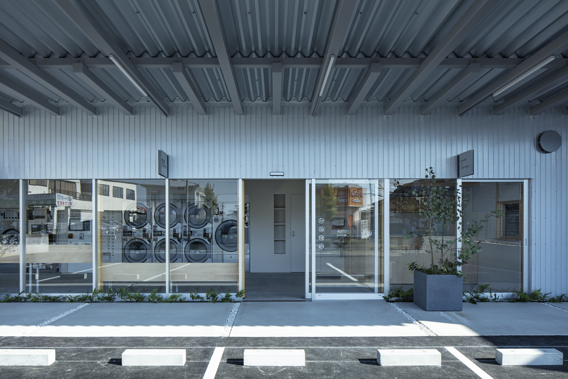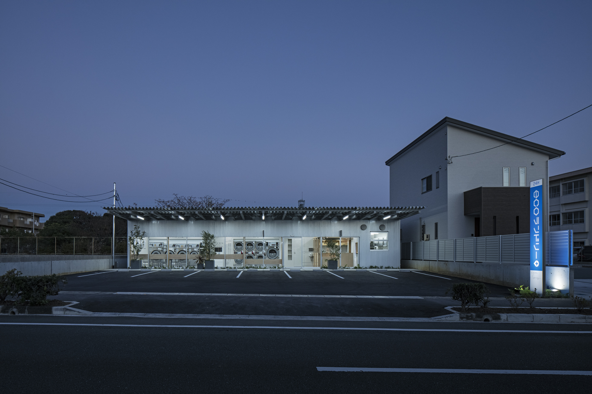 ecoランドリー+ 富士見町店 所在地静岡県磐田市 発注者第一商事株式会社 業務内容基本設計・実施設計・工事監理 用途店舗 竣工年月2020.12 構造形式木造 規模平屋建て 延床面積129.61㎡ 撮影長谷川健太 担当岩田貴昭