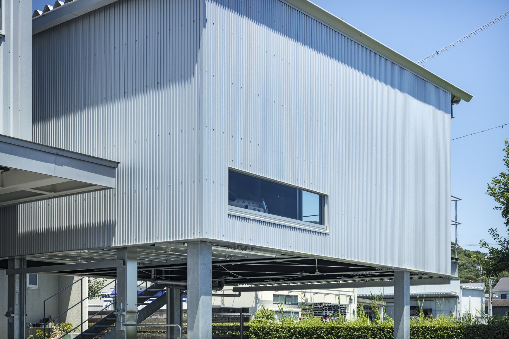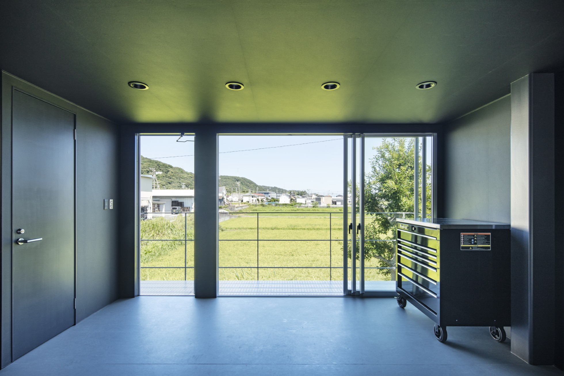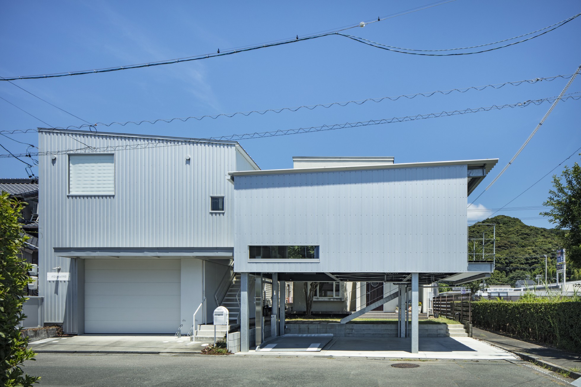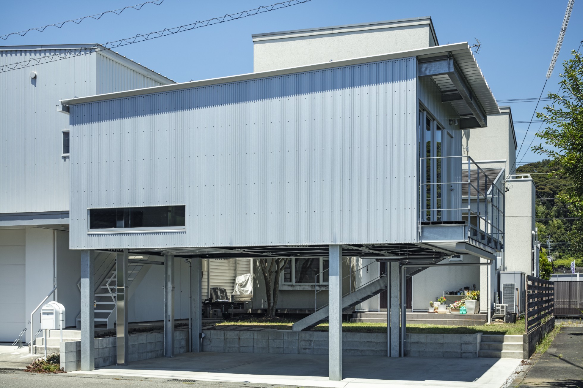 Cut Hut Garage 2 所在地静岡県掛川市 発注者アクアウイング株式会社 業務内容基本設計・実施設計・工事監理 用途事務所 竣工年月2024.12 構造形式鉄骨造 規模地上2階建て 延床面積50.51㎡ 撮影長谷川健太 担当岩田貴昭