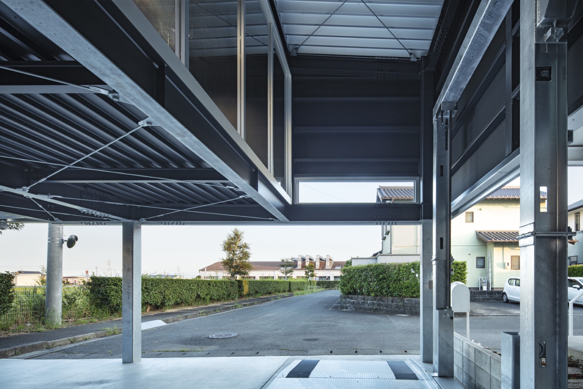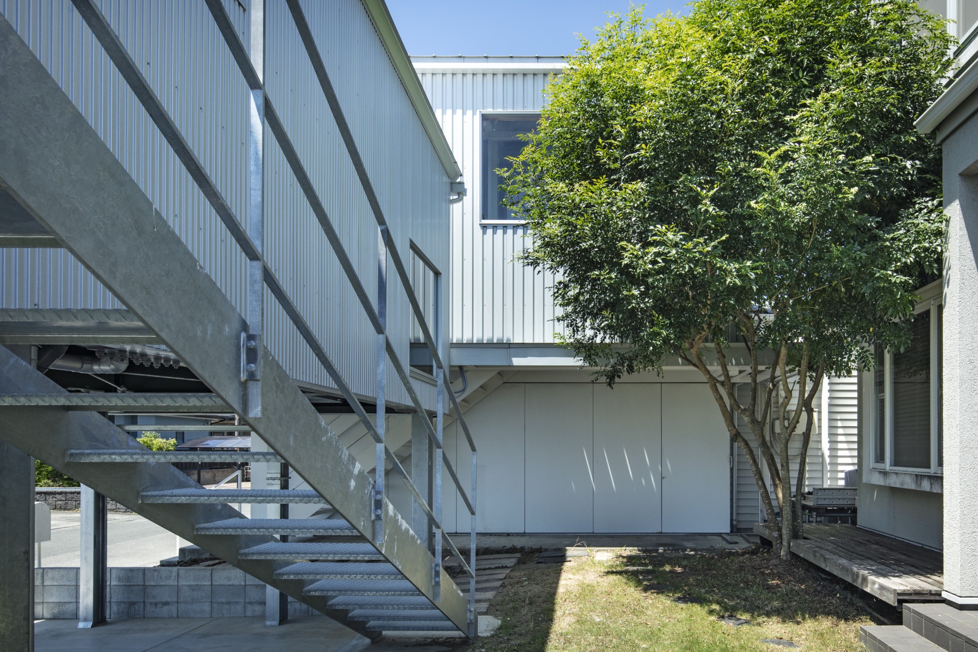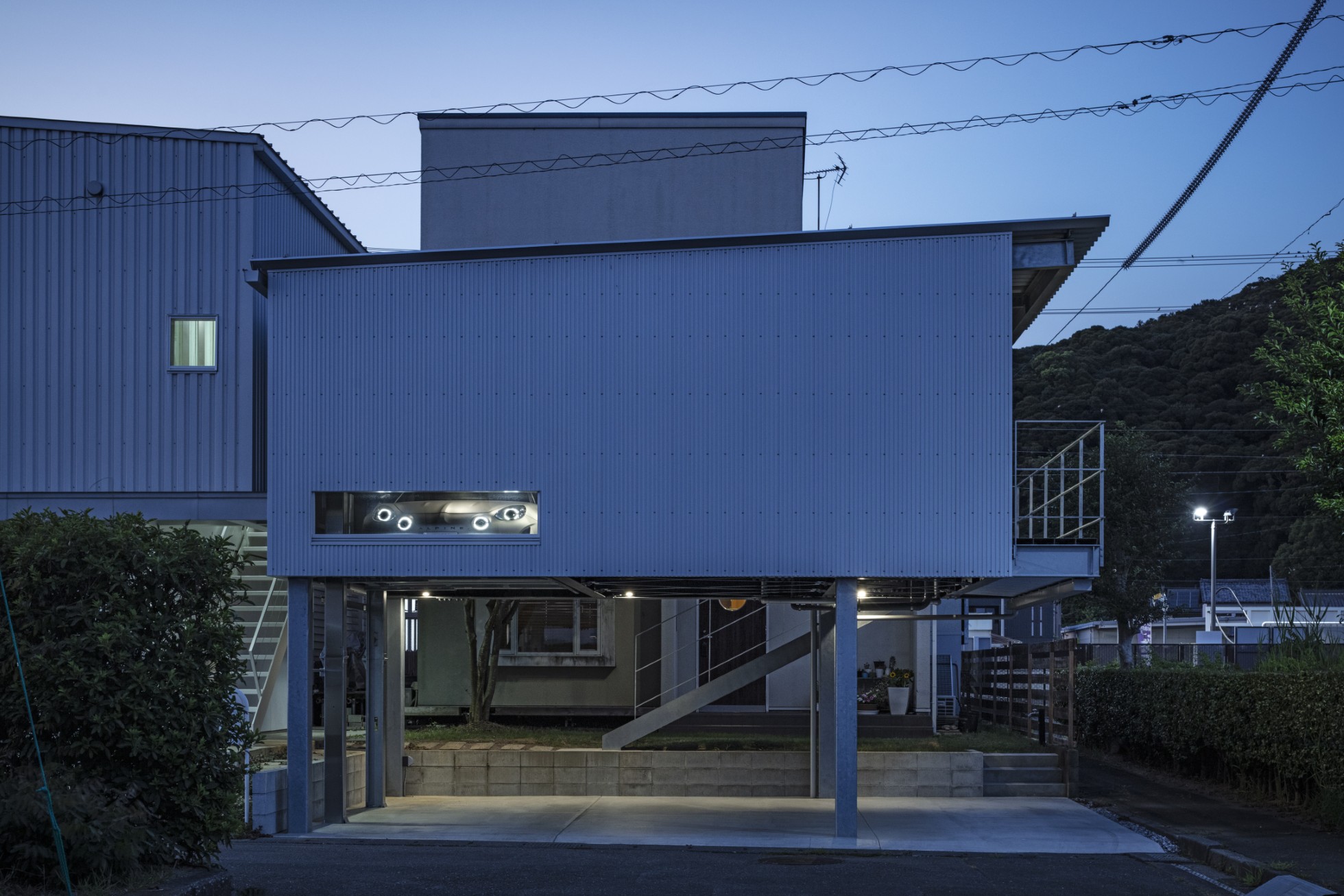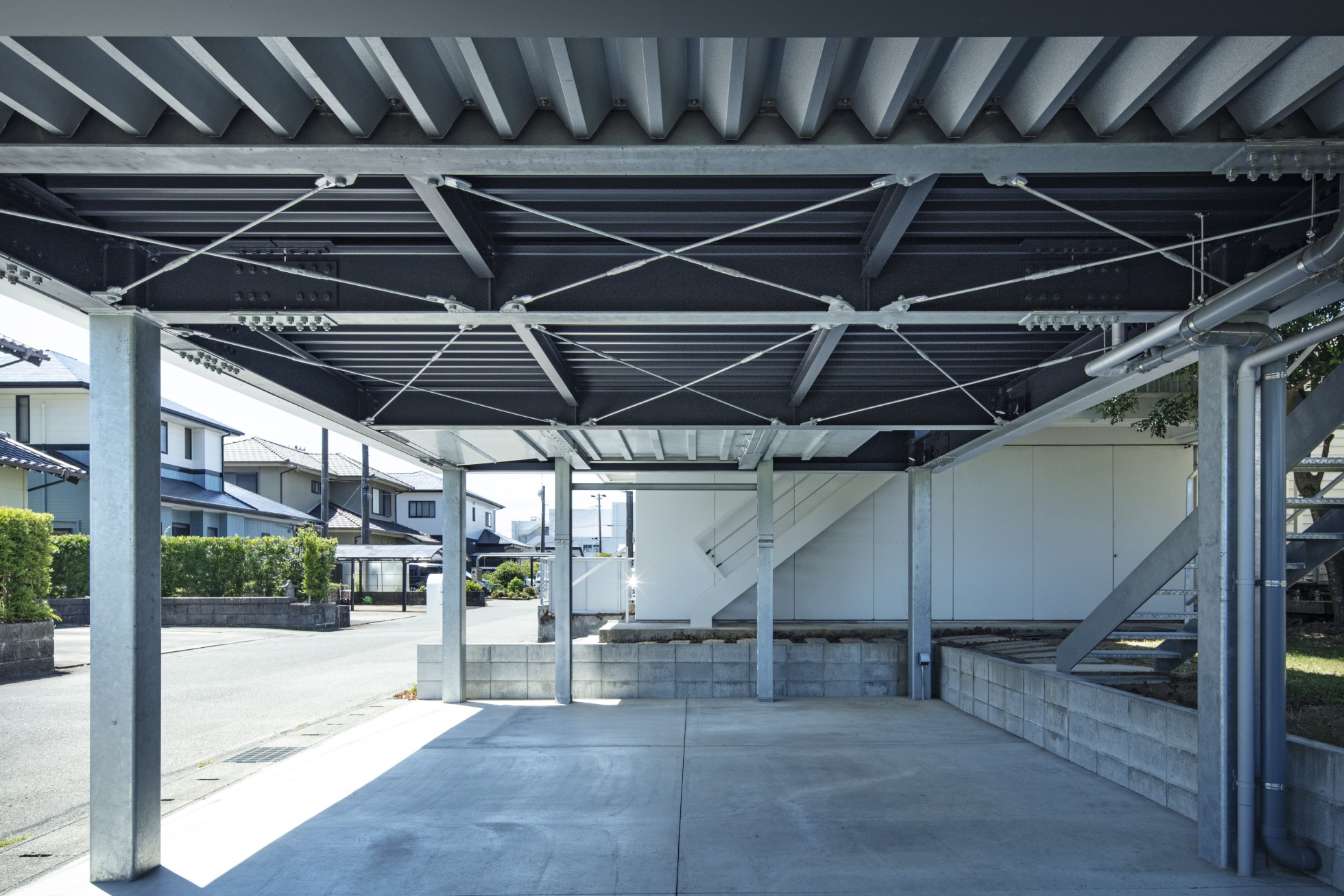 Cut Hut Garage 2 所在地静岡県掛川市 発注者アクアウイング株式会社 業務内容基本設計・実施設計・工事監理 用途事務所 竣工年月2024.12 構造形式鉄骨造 規模地上2階建て 延床面積50.51㎡ 撮影長谷川健太 担当岩田貴昭