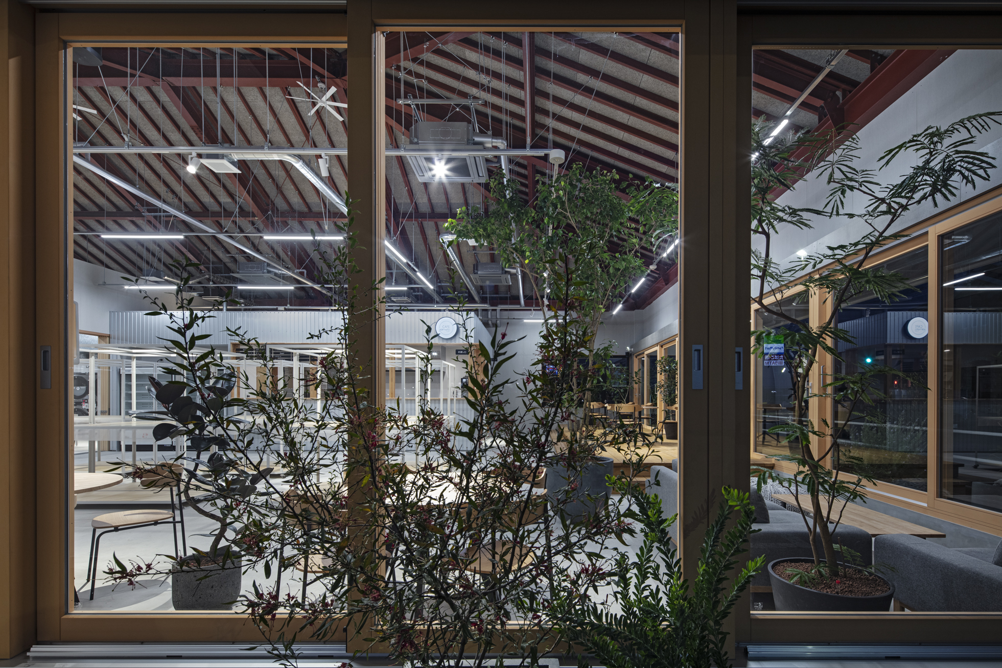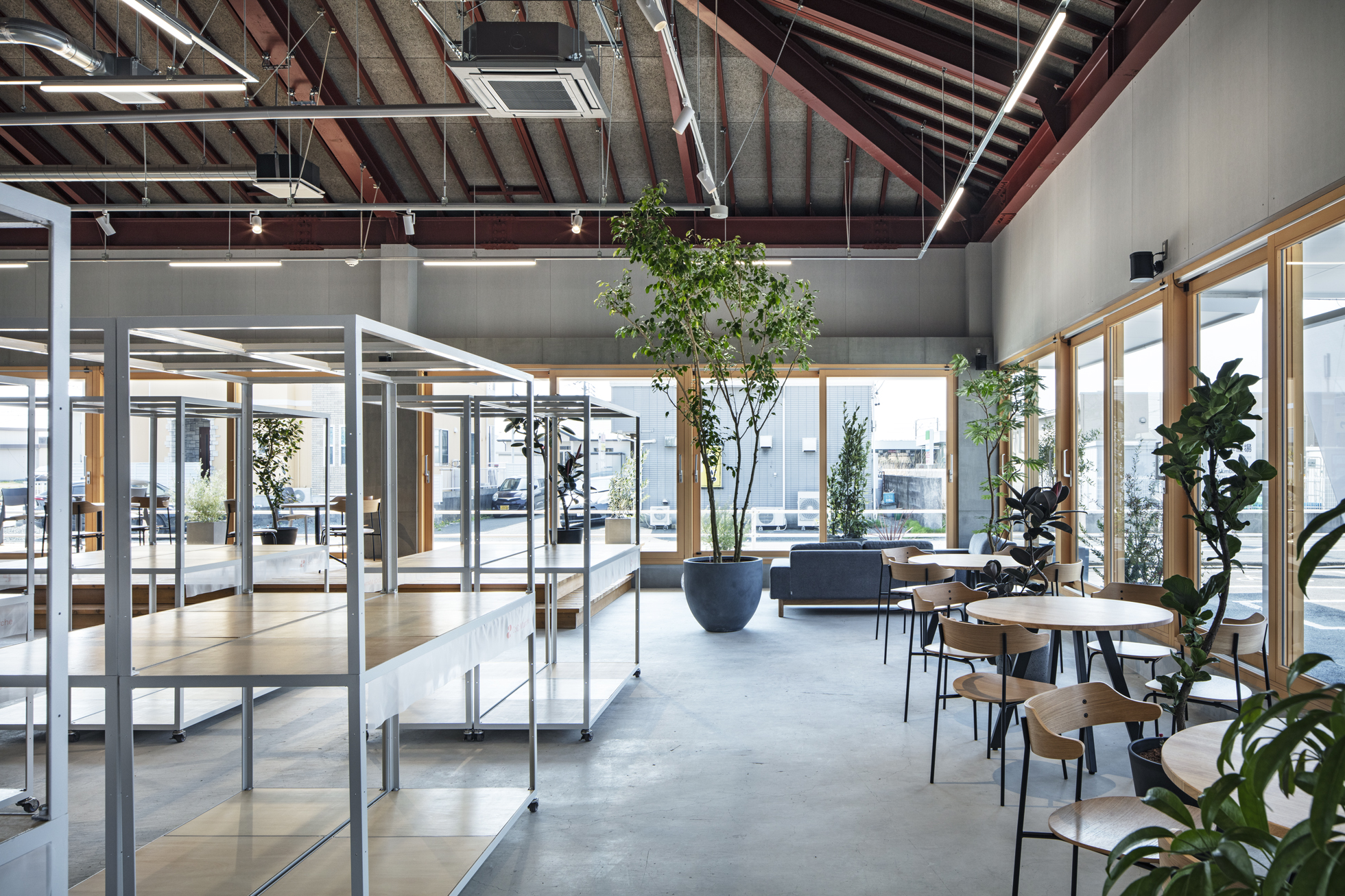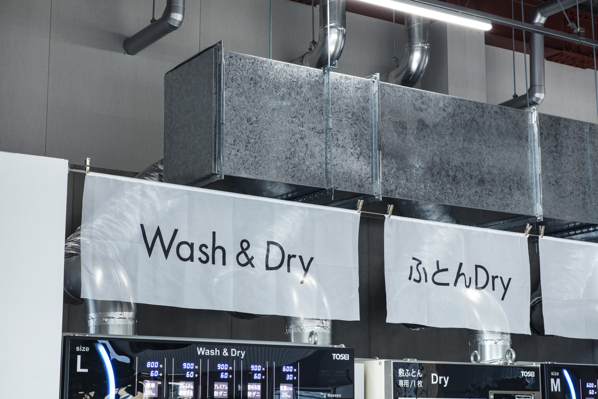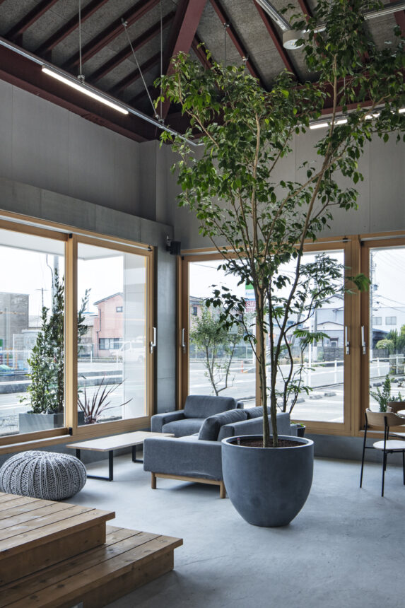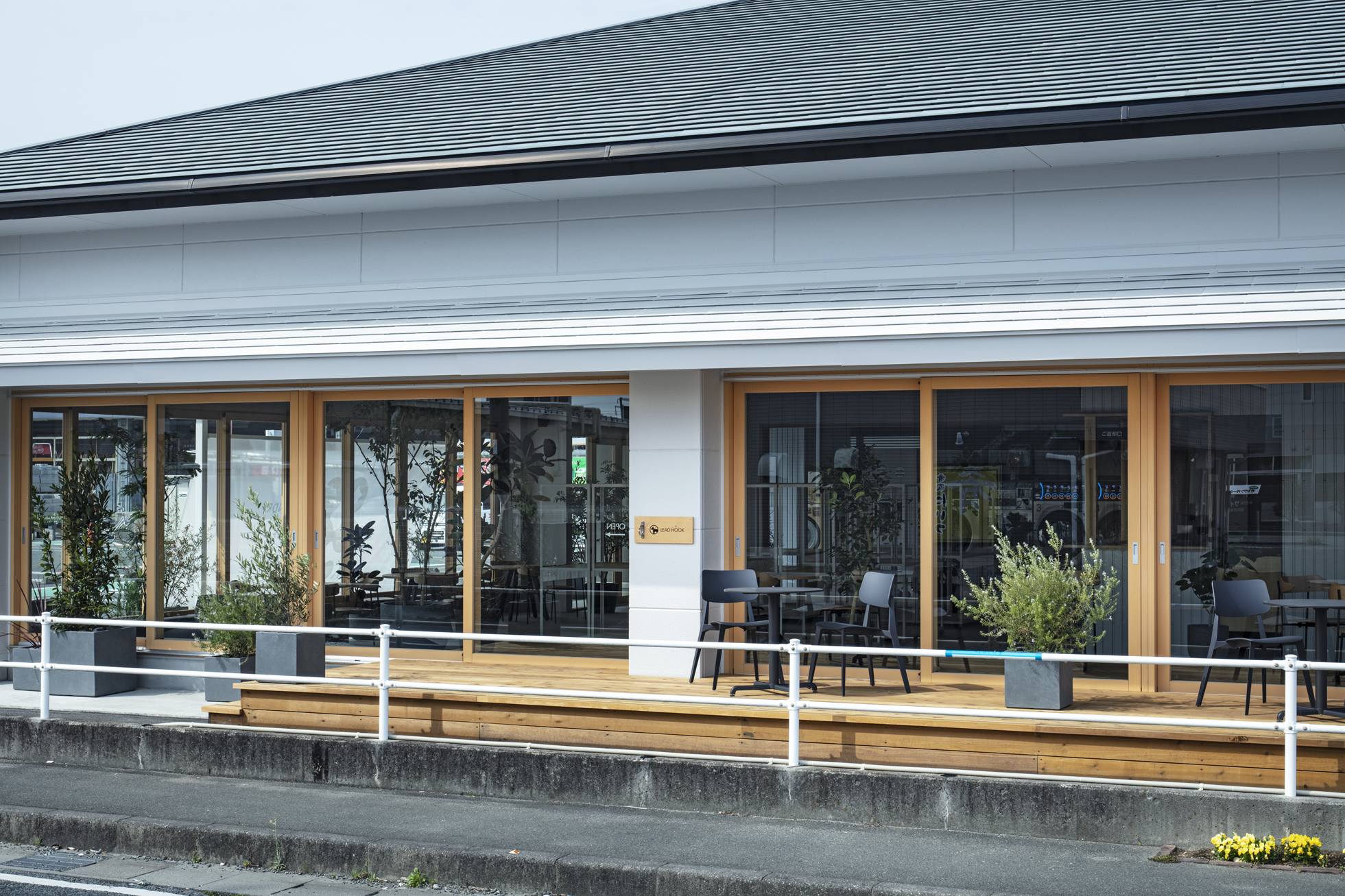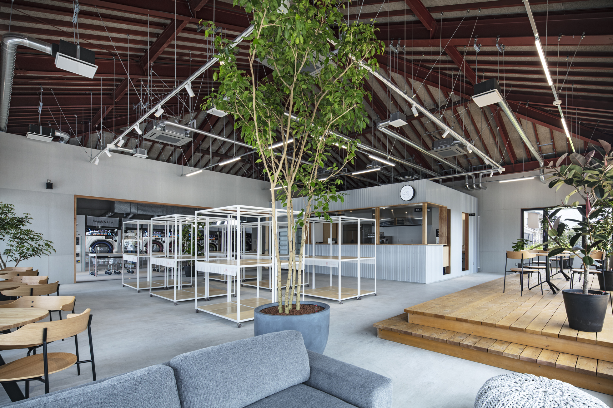 KOEN/ecoランドリー+ 西貝塚店 所在地静岡県磐田市 発注者第一商事株式会社 業務内容基本設計・実施設計・工事監理 用途店舗 竣工年月2022.04 構造形式鉄骨造 規模平屋建て 延床面積299.24㎡ 設計協力サイン計画:株式会社テクイジデザイン 撮影長谷川健太 担当岩田貴昭