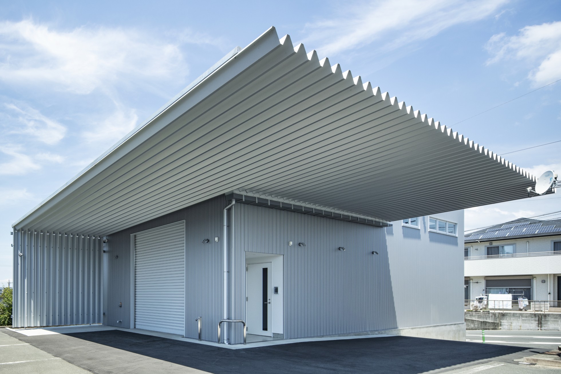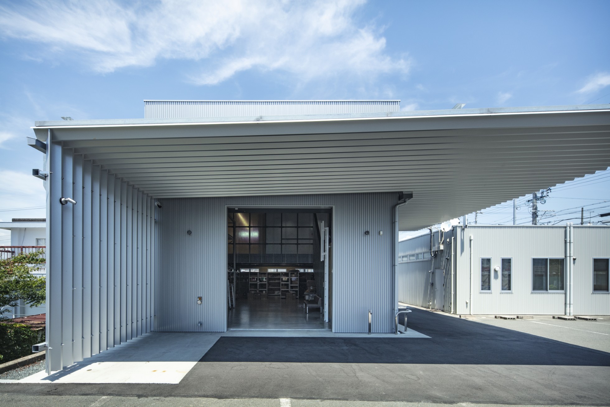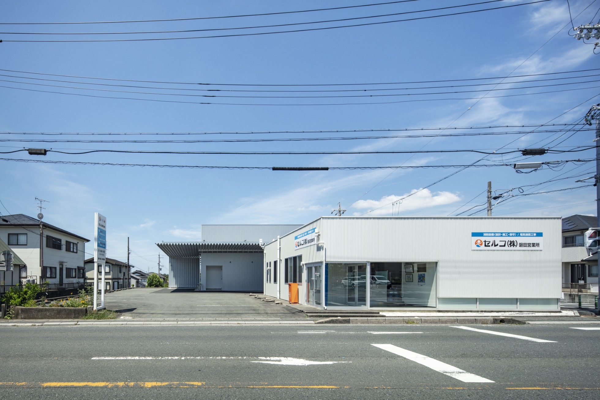 セルコ株式会社 磐田営業所倉庫 所在地静岡県磐田市 発注者セルコ産業株式会社 業務内容基本設計・実施設計・工事監理 用途倉庫 竣工年月2025.02 構造形式鉄骨造 規模地上2階建て 延床面積245.67㎡ 撮影長谷川健太 担当松井心