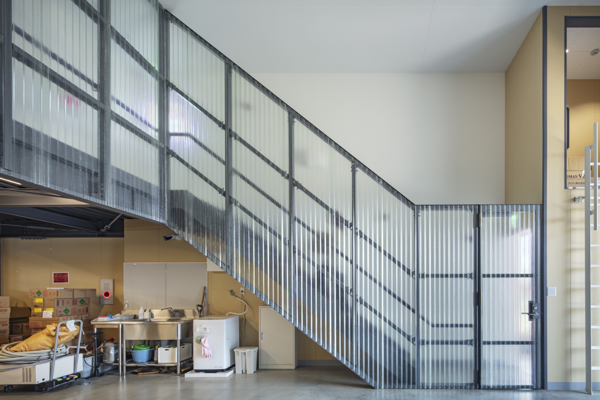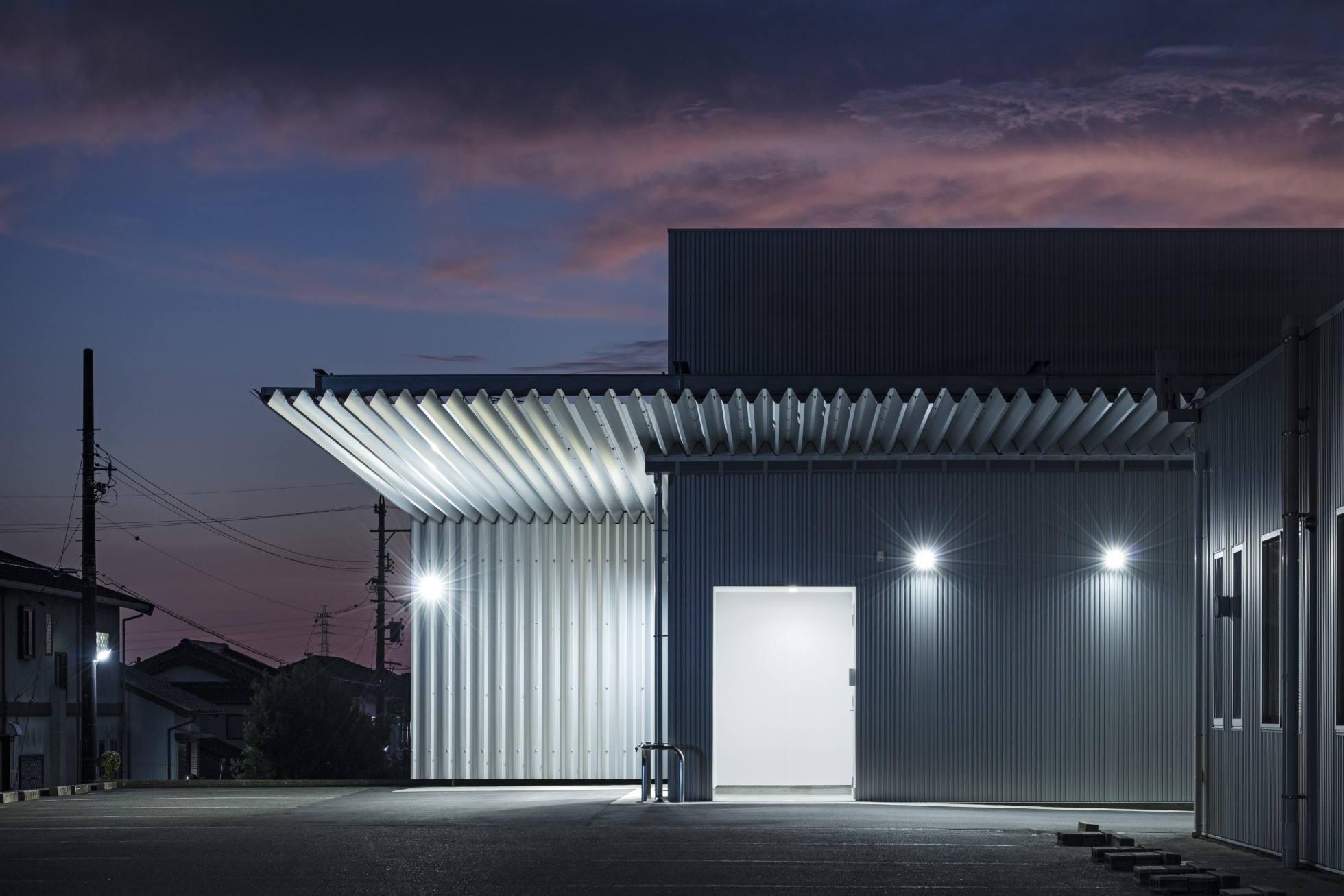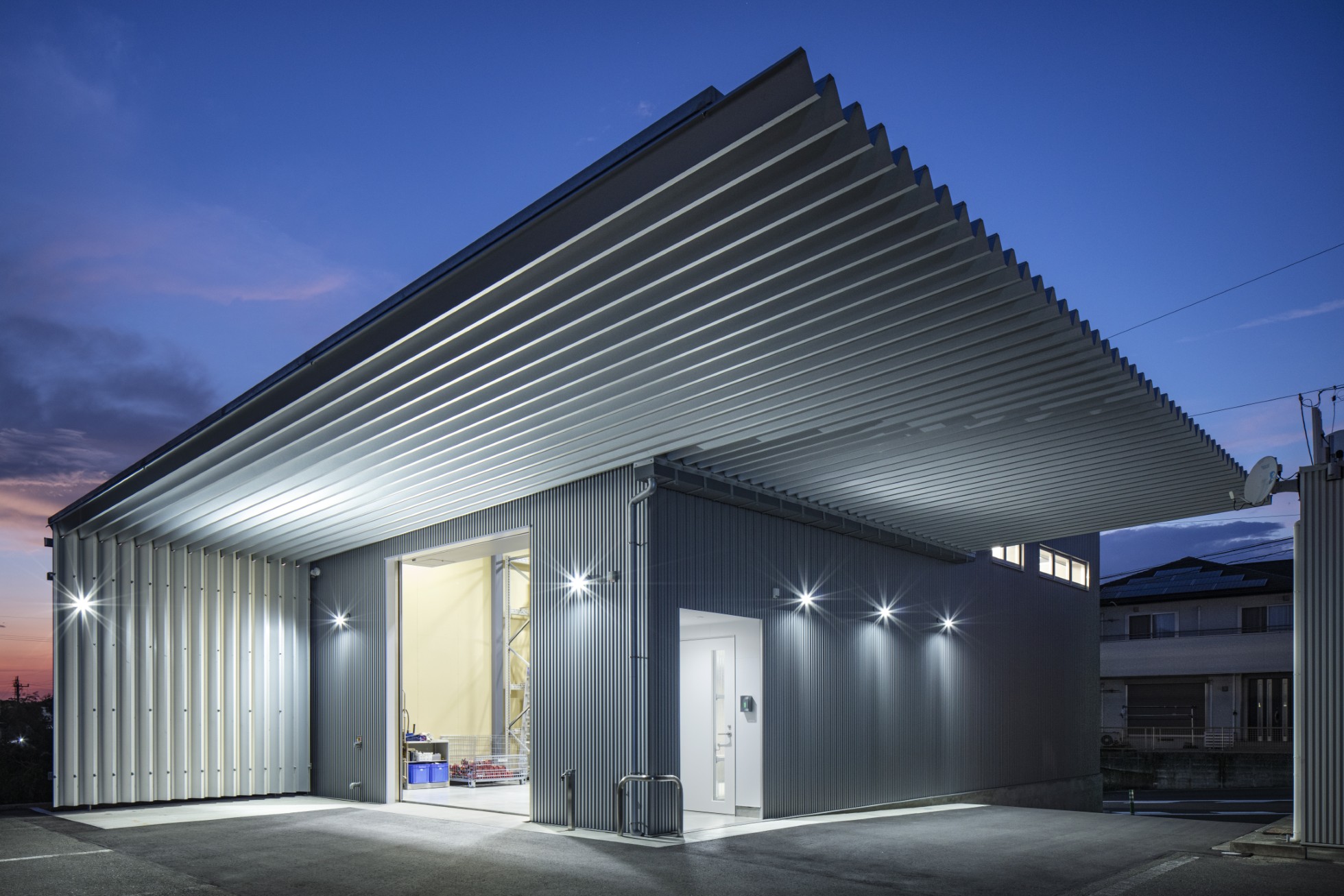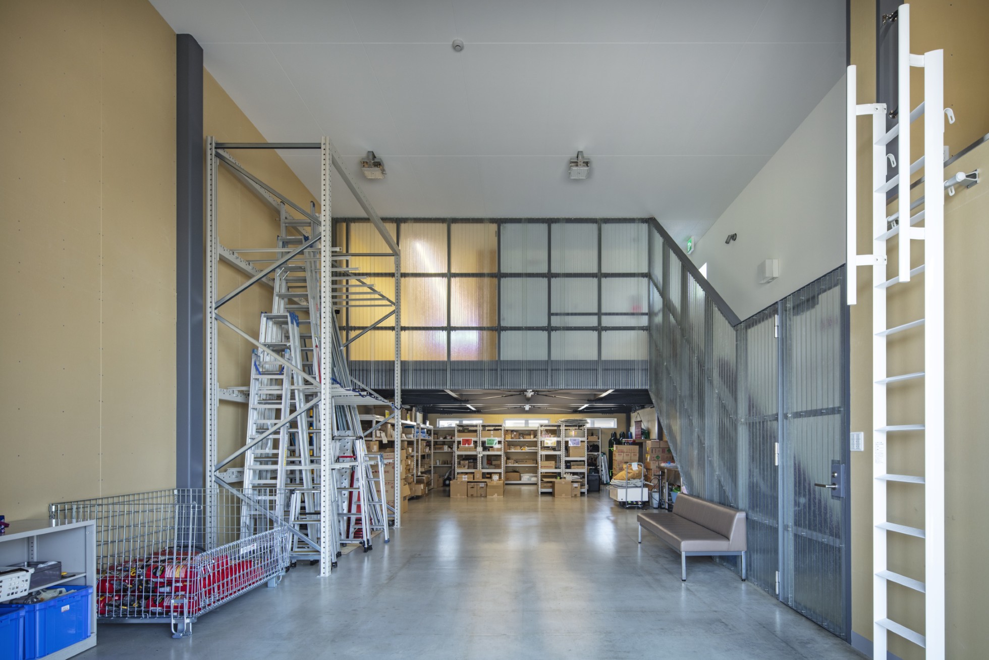 セルコ株式会社 磐田営業所倉庫 所在地静岡県磐田市 発注者セルコ産業株式会社 業務内容基本設計・実施設計・工事監理 用途倉庫 竣工年月2025.02 構造形式鉄骨造 規模地上2階建て 延床面積245.67㎡ 撮影長谷川健太 担当松井心